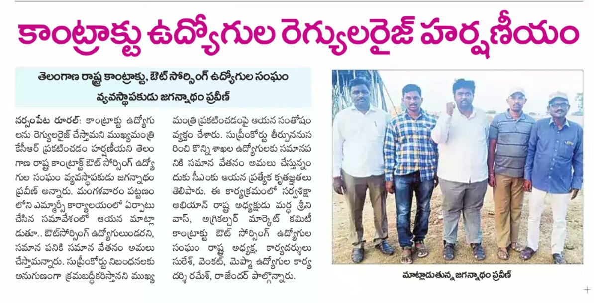 All Contract Outsourcing employees are requested the Govt. of Telangana to help the Contract Outsourcing employees are try to regularize their services.